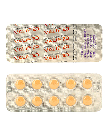 - Valif on tarkoitettu erektiohäiriöiden (ED) hoitoon. Lääke vaikuttaa estämällä fosfodiesteraasin tyyppiä 5 (PDE5), mikä parantaa erektilistä vasteita yhdynnän aikana.